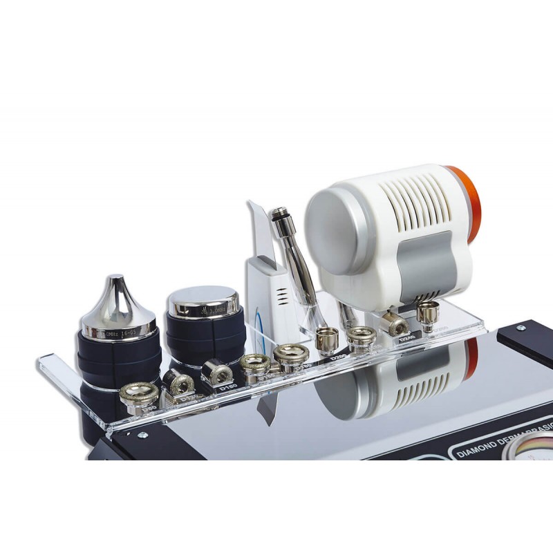 Diamond dermabrasion provides skin peeling with the help of special nozzles with artificial diamond coating of different abrasion. It is possible to use nozzles of different size for different skin areas. Special vacuum nozzle gently peels necessary skin areas.
