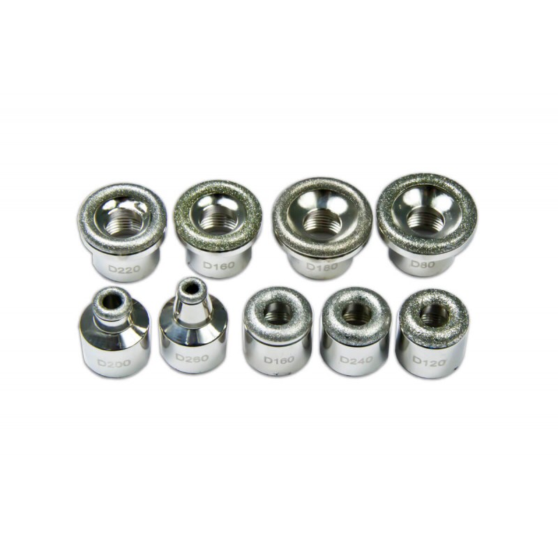 9 diamond tips of different diameter and abrasiveness